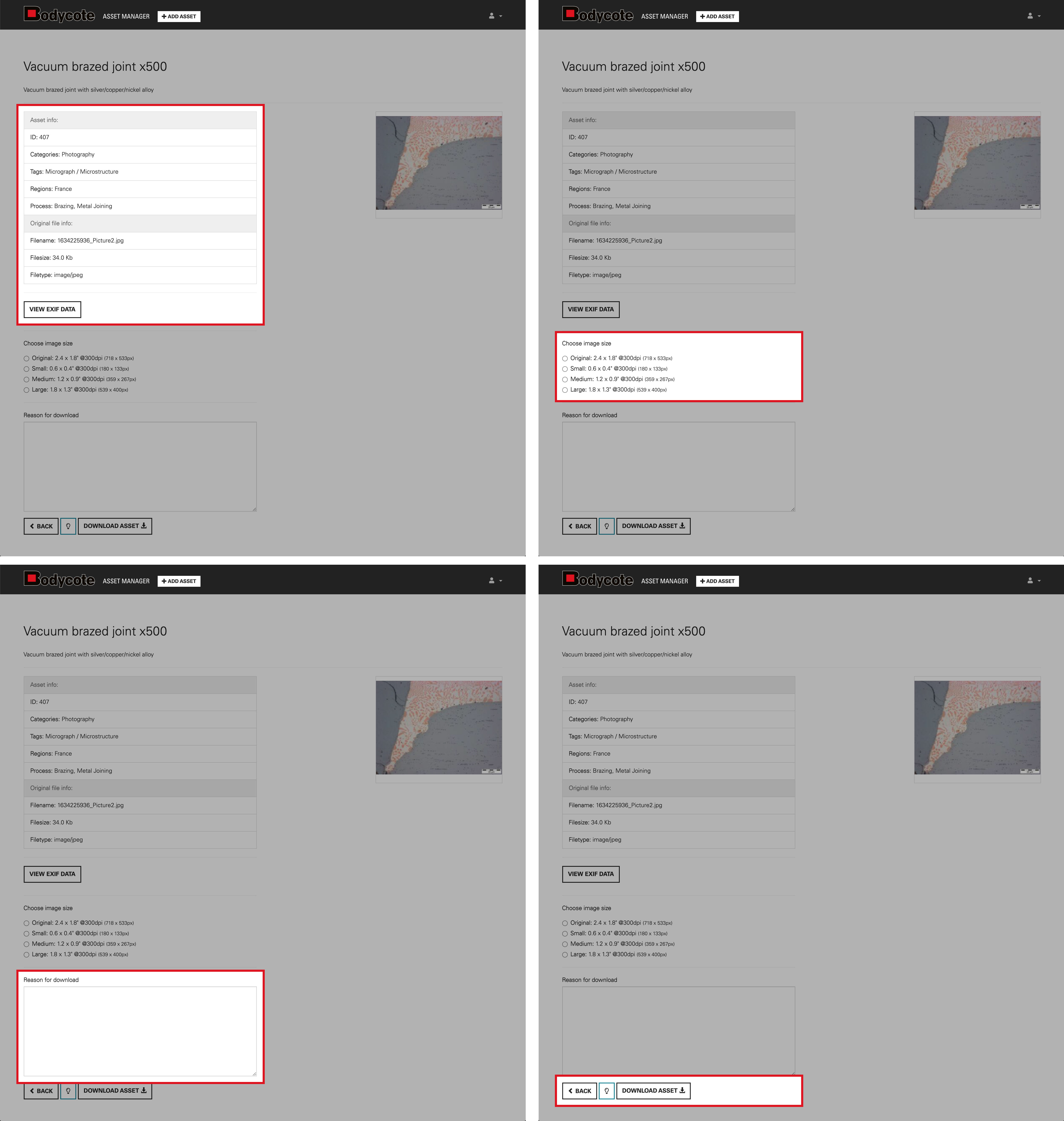 - Provide the 'Reason for download' - please note this is a required field and you will not be able to download an asset unless it is filled in. This section is very important, please include as much information as you can