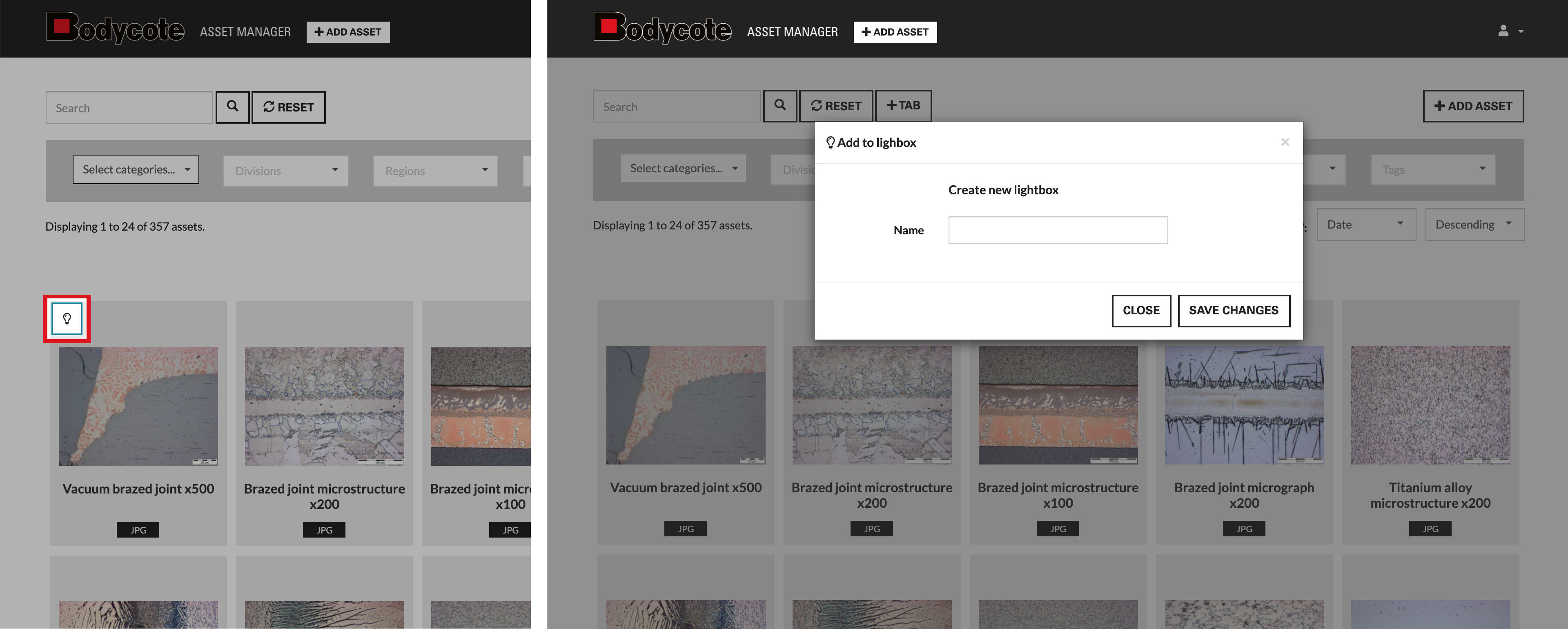 If you have previously created a lightbox you can either add the selected asset to it or create a new lightbox.